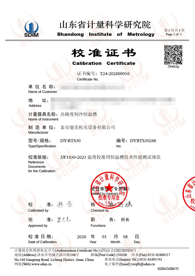 高精度制冷恒溫槽(-30~95℃)校準證書 2026-1-13 本文被閱讀 0 次