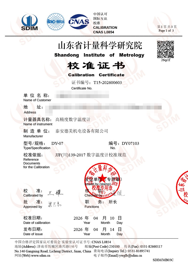 高精度數(shù)字溫度計-校準證書 2026-4-14 本文被閱讀 60 次