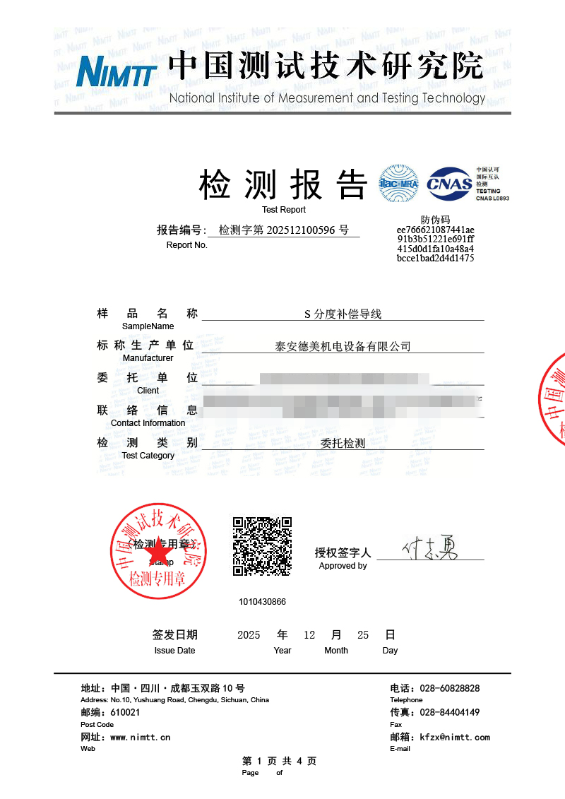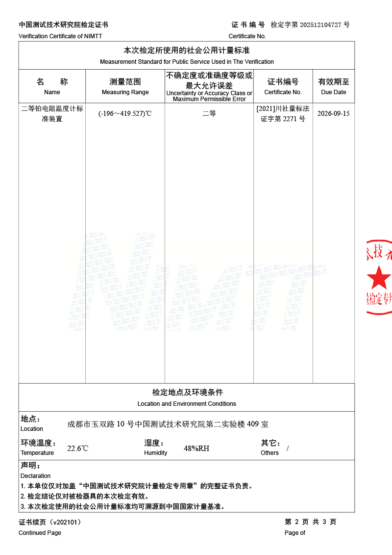 | 上一條:標(biāo)準(zhǔn)水銀溫度計檢定證書 | 下一條:露點儀校準(zhǔn)系統(tǒng)校準(zhǔn)證書 |