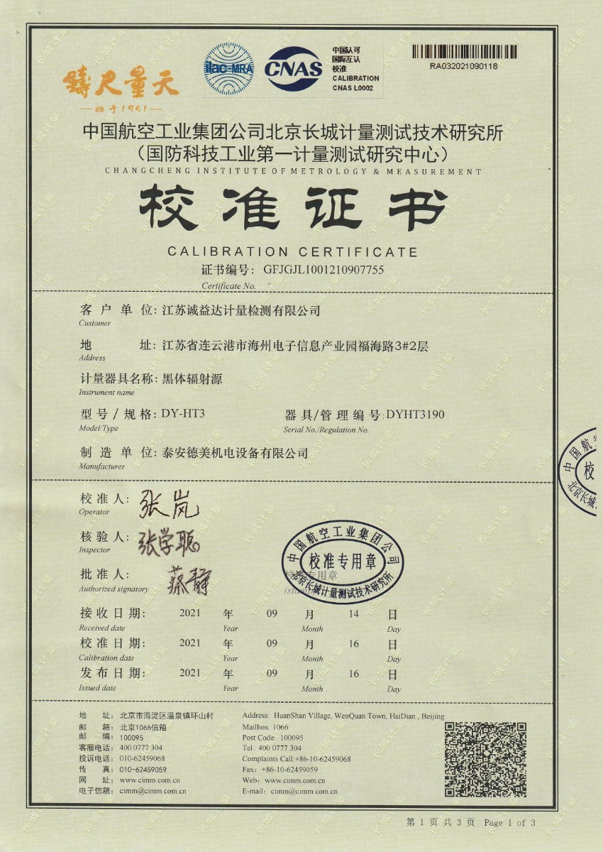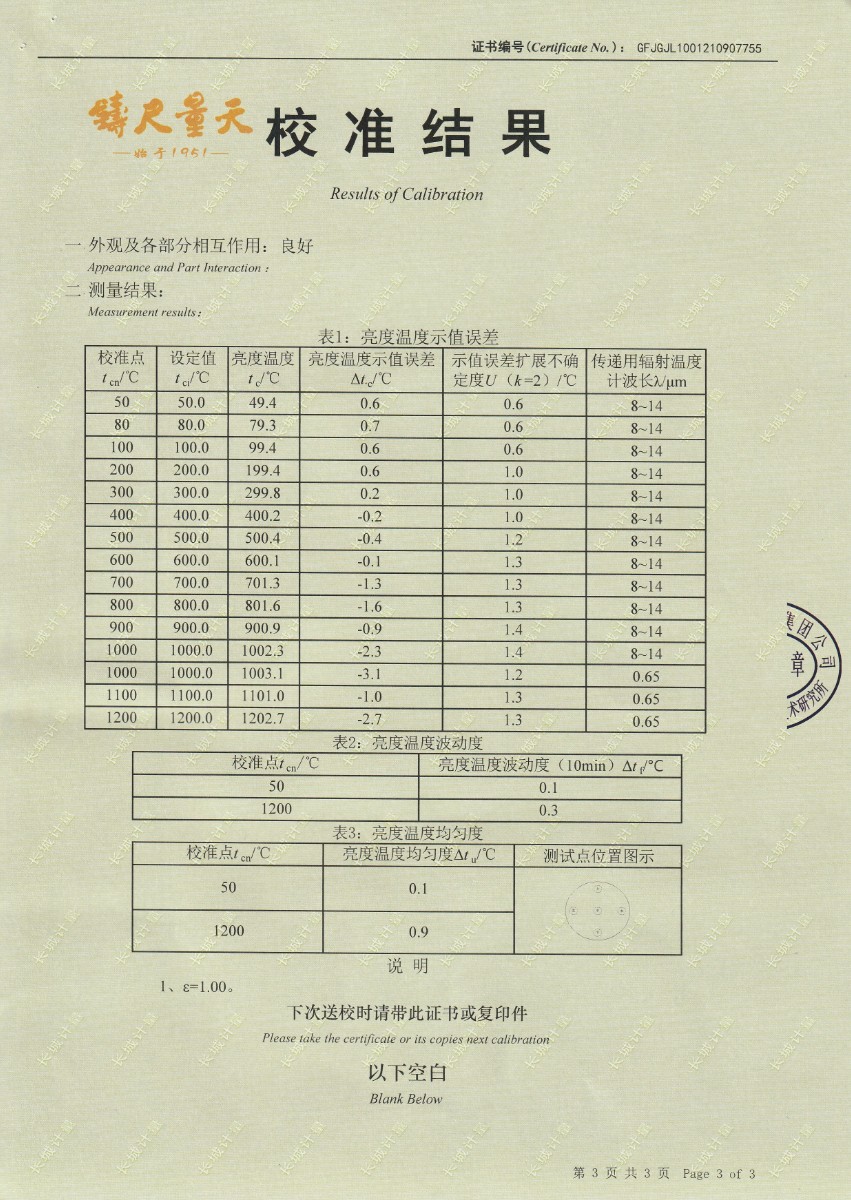 | 上一條:中國(guó)科學(xué)院微電子研究所-面源黑體輻射源 | 下一條:冷鏡式露點(diǎn)儀校準(zhǔn)證書(shū) |