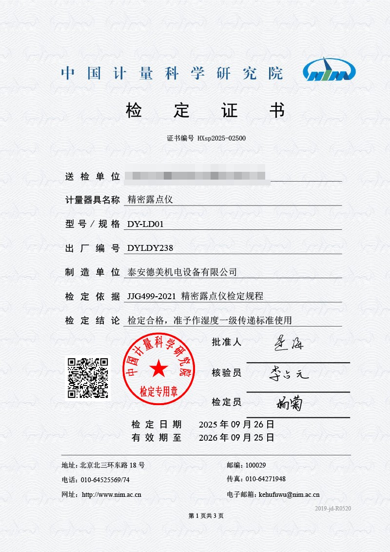 露點儀檢定證書 2025-9-29 本文被閱讀 1238 次