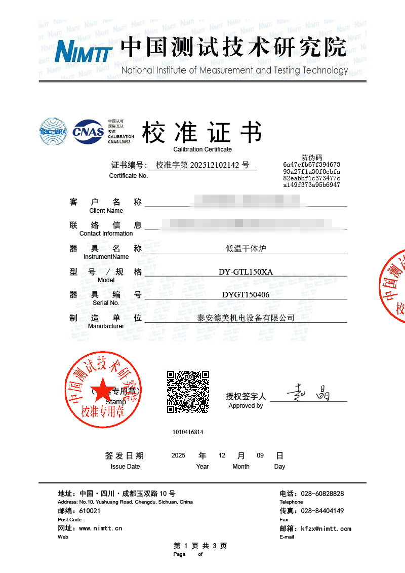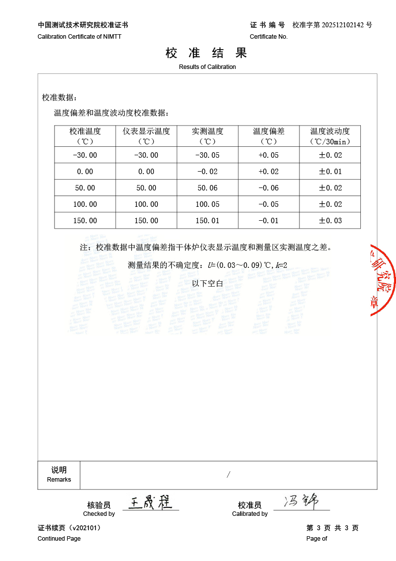 | 上一條:高精度數(shù)字溫度計(jì)校準(zhǔn)證書 | 下一條:水三相點(diǎn)瓶?jī)鲋婆c保存裝置校準(zhǔn)證書 |