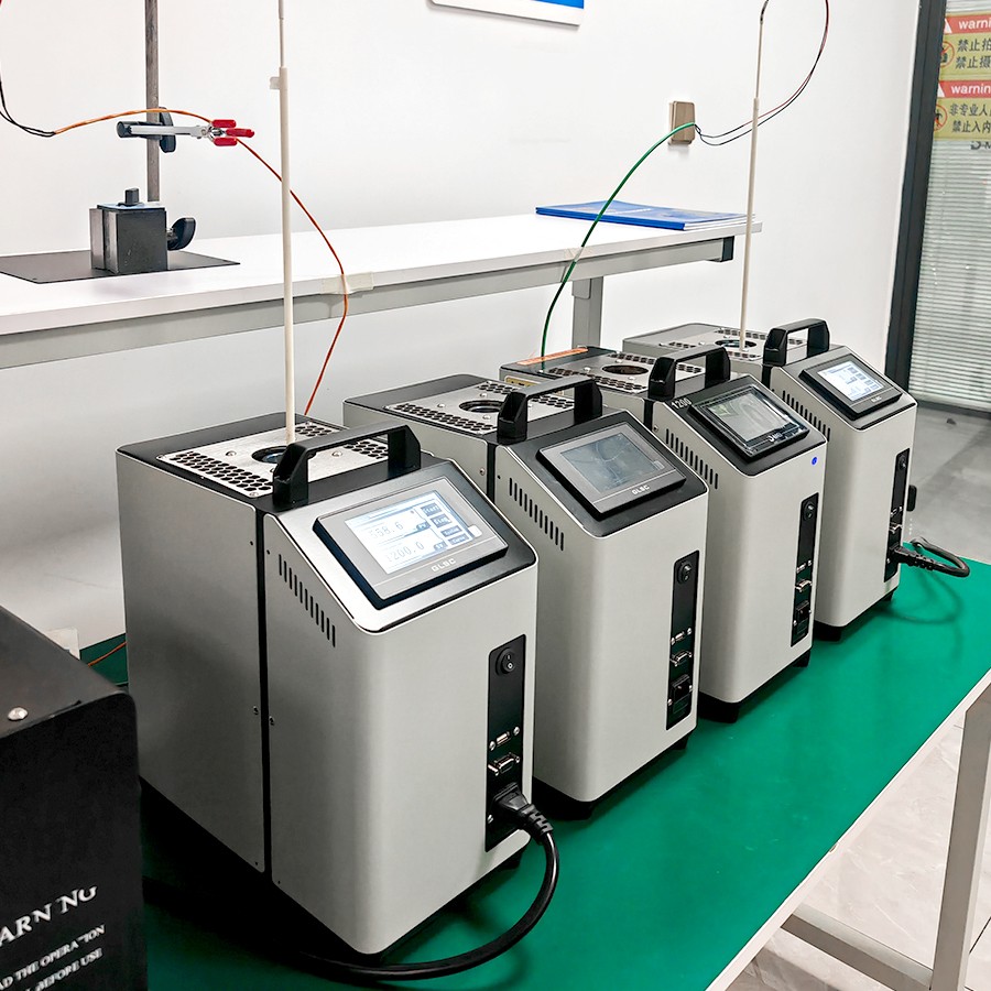 干體爐能夠提供一個(gè)穩(wěn)定、均勻的、準(zhǔn)確的溫度環(huán)境(溫場),提供了類似于恒溫槽(液浴槽)的性能,但是干體爐卻攜帶方便,不需要放置液體。干體爐到達(dá)預(yù)定溫度點(diǎn)并且溫度穩(wěn)定時(shí)間比恒溫槽快5到10倍,這樣可以大大節(jié)省校準(zhǔn)人員的時(shí)間,提高溫度檢定速度。干體爐的便攜性使其能夠到現(xiàn)場進(jìn)行校準(zhǔn)工作,從而解決了恒溫槽在運(yùn)輸移動上的困難。