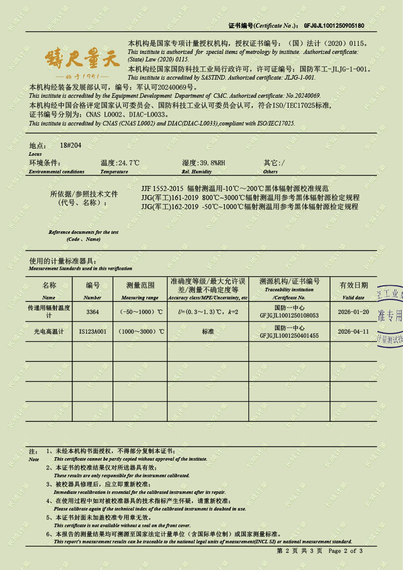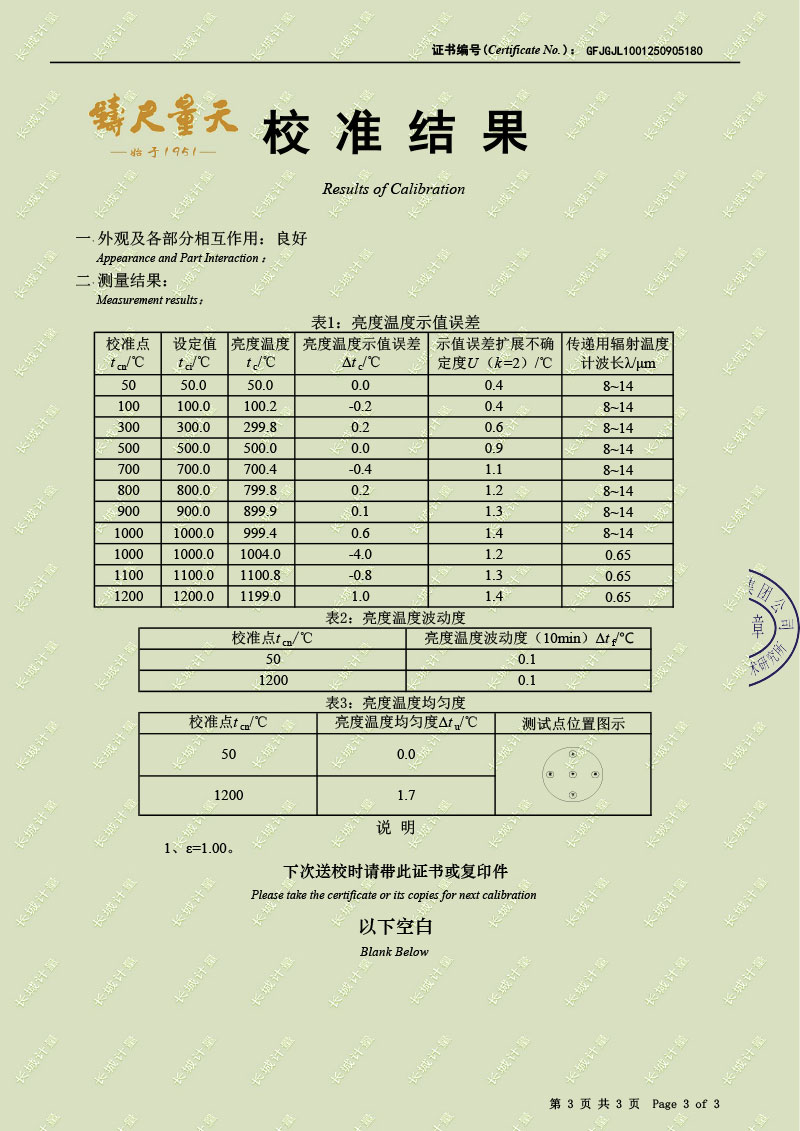 | 上一條:溫濕度檢定箱(-20-70℃)校準(zhǔn)證書 | 下一條:水三相點瓶凍制與保存裝置校準(zhǔn)證書 |