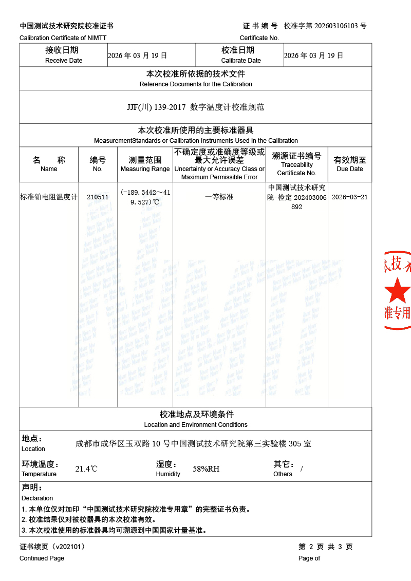數(shù)字溫度計-校準證書 2026-3-20 本文被閱讀 113 次
