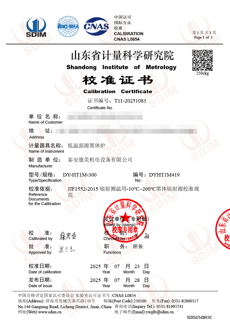 低溫面源黑體爐(0-60℃)校準(zhǔn)證書 2025-7-28 本文被閱讀 3048 次
