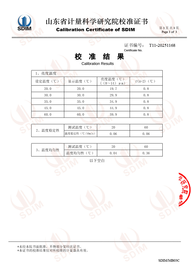 高精度低溫黑體(-10-100℃)校準(zhǔn)證書 2025-8-6 本文被閱讀 2708 次