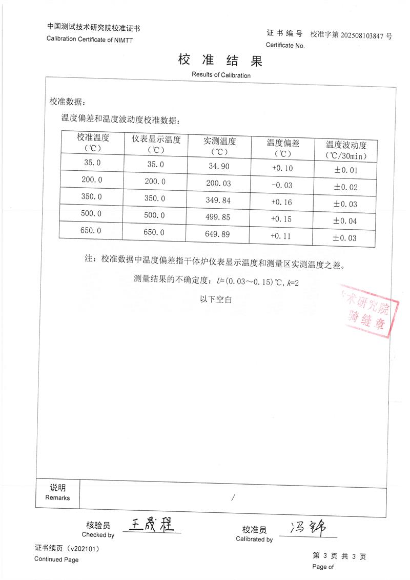 | 上一條:高精度低溫黑體(-10-100℃)校準(zhǔn)證書 | 下一條:水三相點(diǎn)瓶?jī)鲋婆c保存裝置校準(zhǔn)證書 |