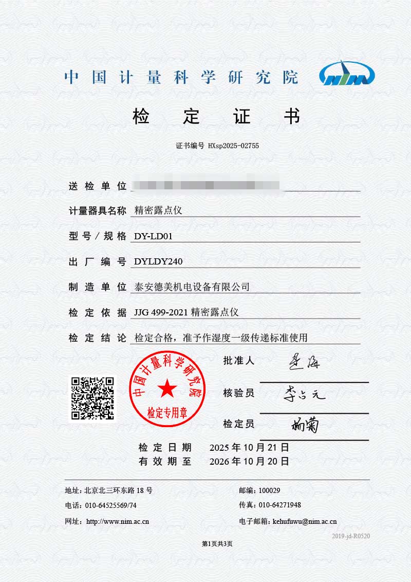 | 上一條:中溫腔式黑體輻射源(50-700℃)校準(zhǔn)證書 | 下一條:水三相點(diǎn)瓶凍制與保存裝置校準(zhǔn)證書 |