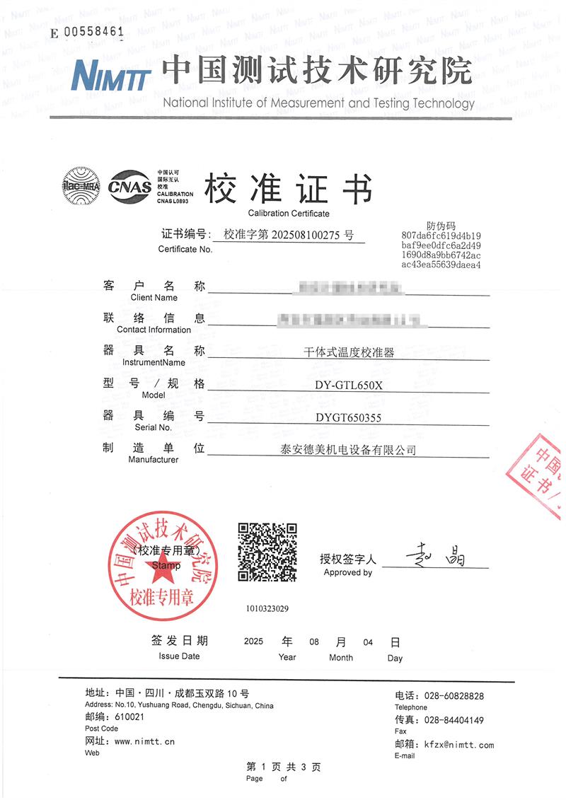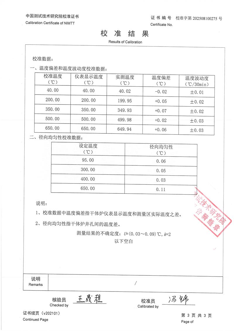 | 上一條:表面溫度計(jì)校準(zhǔn)儀(40-400℃)校準(zhǔn)證書 | 下一條:水三相點(diǎn)瓶凍制與保存裝置校準(zhǔn)證書 |