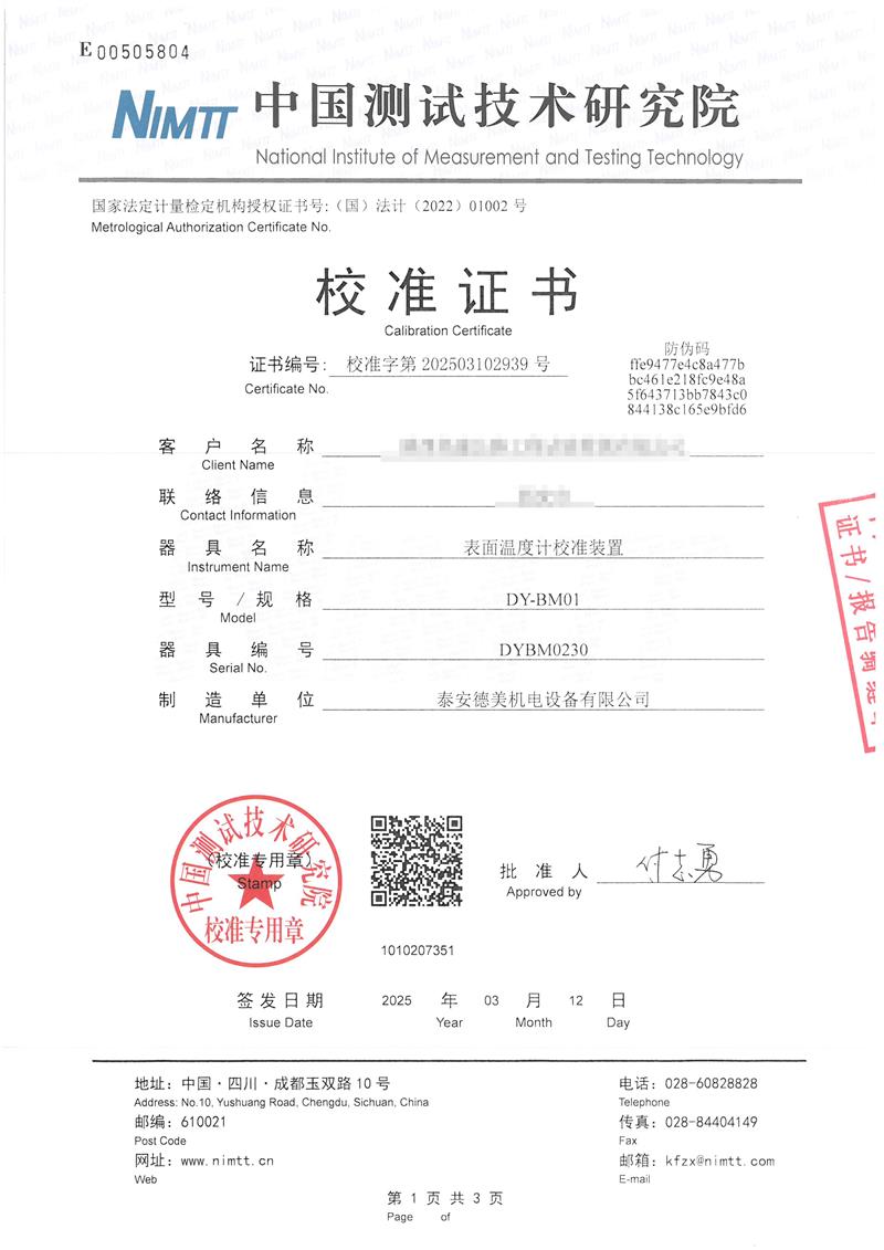 | 上一條:DY-BM02型表面溫度計校驗爐 | 下一條:水三相點瓶凍制與保存裝置校準(zhǔn)證書 |