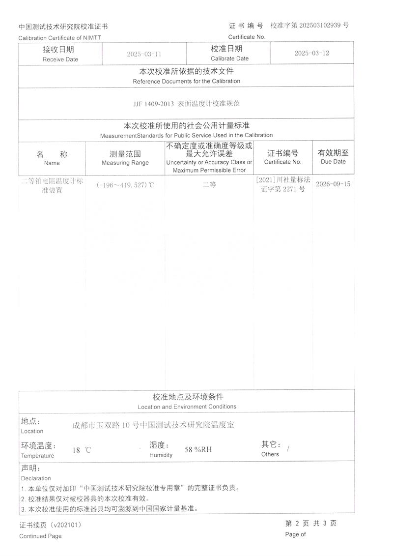 執(zhí)行標(biāo)準(zhǔn) | JJF 1409-2013 表面溫度計校準(zhǔn)規(guī)范 |